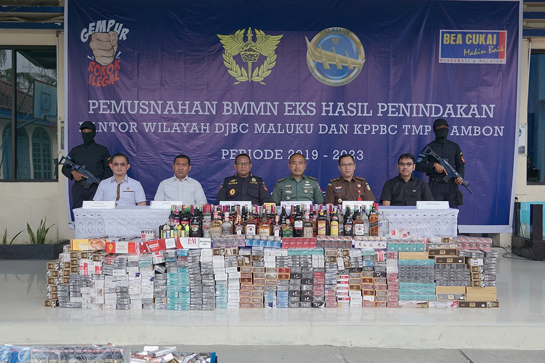 Penindakan dan kegiatan pemusnahan barang kena cukai ilegal ini terwujud berkat sinergi yang baik dengan seluruh elemen masyarakat, baik aparat penegak hukum di wilayah Maluku dan Maluku Utara maupun masyarakat.